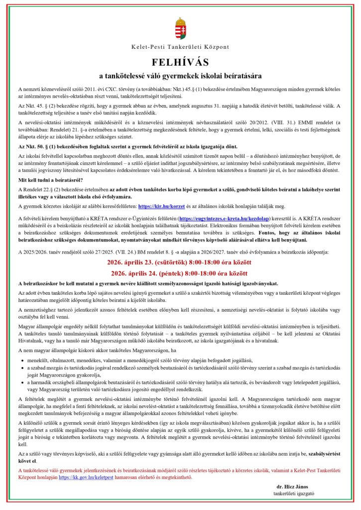 Ezen a linken nézheti meg az "Általános iskolai beiratkozás"-hoz szükséges segédletet